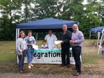 Integrationsrat beteiligt sich erstmals am Iserlohner Friedensfestival In der letzten Sitzung des Integrationsrates wurde dem Friedensplenum Iserlohn ein Zuschuss für die Flüchtlingsarbeit und für die Durchführung des Friedensfestivals gewährt. Zugleich nahm der Integrationsrat erstmals die Einladung zur Teilnahme am Iserlohner Friedensfestival an. Mit einem eigenen Stand präsentierte sich dort das Gremium am vergangenen Sonntag (26. Juni) und nutzte die Gelegenheit, Kontakte zu den Besuchern der Veranstaltung zu knüpfen und Einblicke in die Arbeit des Friedensplenums zu gewinnen. Die Vorsitzende des Integrationsrates, Erbil Eren, zog nach der Veranstaltung ein positives Fazit: „Die Veranstaltung war für die Mitglieder des Integrationsrates eine wertvolle Erfahrung, sich mit den Fragestellungen und Problemen der Asylsuchenden, aber auch der anderen Menschen in dieser Stadt zu beschäftigen. Über die geführten Gespräche haben wir die Chance erhalten, Anregungen für die weitere Arbeit des Integrationsrates zu bekommen. Ich denke, dass der Integrationsrat sich auch bei künftigen Friedensfestivals präsentieren wird. Mein herzlicher Dank gilt allen Kolleginnen und Kollegen aus dem Integrationsrat, die sich an der Veranstaltung beteiligt haben.“ |