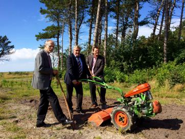 Vorbereitungen für die große Pflanzaktion am WattBz: Oberbürgermeister Dr. Ulrich Getsch, EWE Geschäftsführer Thomas Windgassen und Dezernatsleiter Martin Adamski laden zur tatkräftigen Beteiligung am aktiven Klimaschutz ein.