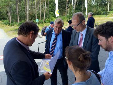 „Stadtverwaltung für Stadtverwaldung“ (frei nach Joseph Beuys): Oberbürgermeister Dr. Ulrich Getsch und Dezernatsleiter Martin Adamski mit EWE Geschäftsführer Thomas Windgassen im Pressegespräch am WattBz.