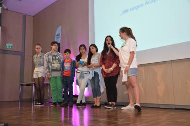 Bildzeile 2: Die Realschule am Stadtpark Schwerte präsentierte bei der CreaCourage 2014 ihr Projekt auf der großen Bühne. Foto: Birgit Kalle – Kreis Unna