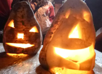 Leuchtende Rübengesichter basteln Teilnehmer des Familienprogramms zu St. Martin im Niederrheinischen Freilichtmuseum in Grefrath. Foto: Kevin Gröwig / Abdruck honorarfrei.