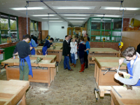 Schüler arbeiten im Rahmen der Aktion "Werkstoff Holz erleben" an ihren Projekten. Auch über Angebote des Rhein-Maas Berufskollegs können sich die Besucher der Ausbildungsmesse am 19. November informieren.