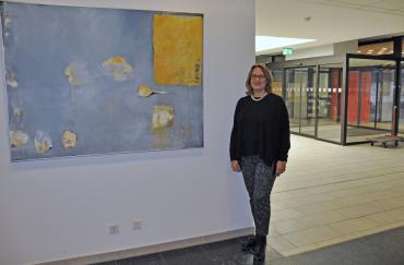 In der Neuen Bahnstadt arbeitet auch Ulrike Harter mit ihrer Ateliergemeinschaft „art4“ seit 2014. Die Künstlerin ist 1955 geboren und wohnt in Leverkusen. Als gelernte Groß- und Einzelhandelskauffrau und nach Ausbildungen an verschiedenen Kunstakademien studierte sie an der freien Akademie der bildenden Künste in Essen. Das Thema „Bewegung“ ist eine der Leitlinien ihrer künstlerischen Arbeit: „Der Mensch lässt sich sowohl von inneren als auch von äußeren Einflüssen bewegen. Wir bewegen uns von dem Tag unserer Geburt an. Ein Leben lang“, erklärt sie den Titel und erläutert ihre Bilder: „Meine Malerei dient als Mittel zur Übertragung von Empfindungen, Erfahrungen und Ansichten. Das führt unweigerlich zu Bewegungen.“ Die Ausstellung „Bewegung“ insgesamt rund 45 Bilder, von denen zehn im Gebäude Goetheplatz nun bis zum Sommer zu sehen sind.