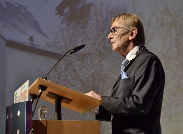 Neujahrsempfang der Stadt Iserlohn Am Samstag, 14. Januar, hatte Bürgermeister Dr. Peter Paul Ahrens zum traditionellen Neujahrsempfang der Stadt Iserlohn auf die Alexanderhöhe eingeladen. Vertreter aus Politik, Wirtschaft, Vereinen und Verbänden, Kirche und Verwaltung sowie Iserlohner Bürgerinnen und Bürger waren der Einladung gefolgt. Die Veranstaltung fand im festlich geschmückten Parktheater statt, wo Dr. Ahrens rund 400 Gäste begrüßen konnte. Musikalisch unterhalten wurden die Besucher von der Show- & Marchingband Iserlohner Stadtmusikanten 1995 e. V., die vor allem für ihre Darbietung der Star Wars-Melodie großen Applaus erntete. In seiner Ansprache blickte Dr. Peter Paul Ahrens zunächst auf das vergangene Jahr zurück. Er berichtete unter anderem von seiner Betroffenheit angesichts der weltweiten Ereignisse und angesichts des Terrors, der nun auch Deutschland erreicht habe. Bezogen auf Iserlohn appellierte er an die Zuhörer, dass Gemeinsinn und nicht Einzelinteressen das Denken und Handeln dominieren mögen. Für das neue Jahr wünsche er sich eine Streitkultur, die diesen Namen auch verdiene. Die Aufmerksamkeit aller solle sich nicht auf die sogenannten Wutbürger, sondern auf die Mutbürger richten, die nach vorne blicken und anpacken wollen, anstatt zu lamentieren. Zum Schluss seiner Rede, in der Dr. Ahrens natürlich auch auf die großen Projekte und Herausforderungen, vor denen Iserlohn im Jahr 2017 steht, einging, forderte er: „Lassen Sie uns ‚dafür‘ sein, für die Entwicklung Iserlohns; für das Miteinander, für mehr Zuversicht und für mehr Bereitschaft, Eigeninteressen zurückzustellen. ‚Dafür‘ soll das Iserlohner Wort des Jahres sein.“ Ebenfalls im Rahmen des Neujahrsempfangs würdigte der Bürgermeister die Verdienste von drei Bürgern mit der Verleihung von zwei Ehrenringen und einer Ehrennadel: die Bundestagsabgeordnete Dagmar Freitag und der langjährige Vorsitzende des Fußball- und Leichtathletikkreises Franz-Josef Bomnüter erhielten den Ehrenring und Rainer Großberndt, stellvertretender Vorsitzender der Werbegemeinschaft Letmathe, die Ehrennadel der Stadt Iserlohn. Nach dem offiziellen Teil des Empfangs im großen Haus nutzten viele im Foyer die Gelegenheit zu Gesprächen und stießen bei einem Glas Sekt auf das neue Jahr an. Die komplette Ansprache des Bürgermeisters (einschließlich der Laudationen zu den Geehrten) und Fotos vom Neujahrsempfang finden Interessierte im Internet unter www.iserlohn.de