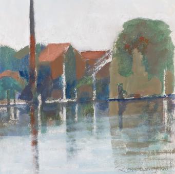 Johann Rosenboom, Gewässer (Hafen in Leer), 2012, Tempera auf Papier Foto: Jürgen Bambrowicz, © Kunsthaus Leer