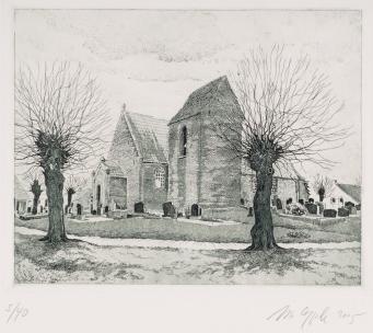 Wolfgang Epple, Kirche in Critzum, 2005, Strichätzung und Aquatinta Foto: Jürgen Bambrowicz, © Kunsthaus Leer