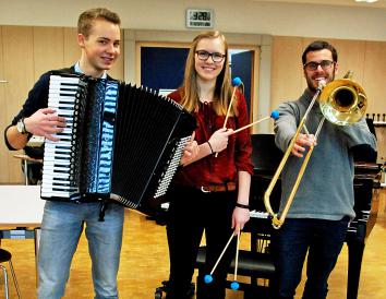 “Europas Musiktalente” im Kammerkonzert am Sonntag in der Musikschule Iserlohn „Europas Musiktalente“ - so lautet der Titel des 3. Iserlohner Kammerkonzertes, das am kommenden Sonntag, 12. März, um 11 Uhr im Konzertsaal der Musikschule Iserlohn, Gartenstraße 39, beginnt. Im Rahmen der Konzert-Tournee „Give music a future – Discover Music Tour“ treten drei junge Künstler auf, die höchste Auszeichnungen bei europäischen Jugendmusikwettbewerben erhielten: der westfälische Akkordeonist Julius Schepansky, mehrfach prämiert beim Bundeswettbewerb „Jugend musiziert“, sowie Juan Sanjuan Más, Posaunist aus Spanien und die Perkussionistin Béatrice Picard aus Luxemburg, beide Preisträger nationaler Jugendmusikwettbewerbe und ebenfalls vom Europäischen Dachverband der Jugendmusikwettbewerbe EMCY für die Konzerttournee ausgewählt. Für die ungewöhnliche Kombination der Instrumente – darunter auch Vibraphon und Marimbaphon) – haben die drei Musiker ein Programm zusammengestellt, das bekannte Werke von Johann Sebastian Bach (Goldberg-Variationen), Claude Debussy, Jacques Ibert und anderen Komponisten in Arrangements und Improvisationen vorstellt. Eine Improvisation für Posaune solo und „True Colours“ für Marimbaphon runden das Programm ab, das mit einer Trio-Improvisation über Debussys Klangzauber „Das Meer“ endet. Eintrittskarten für das etwa einstündige Konzert (10 Euro / ermäßigt 5 Euro) gibt es nur an der Tageskasse. Noch vor ihrer Abreise aus Iserlohn werden die jungen Talente am folgenden Morgen ein education Konzert in der Südschule geben, um dort Iserlohner Grundschüler in gemeinsame Musik- und Bewegungsaktionen einzubeziehen. Das Programm und das education Projekt „Discover Music“ werden vom Deutschen Musikrat und CREATIVE EUROPE, dem Kulturprogramm der EU, gefördert. |