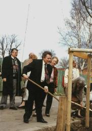 Oberbürgermeister Willi Polte bei einer Baumpflanzung für die Aktion „Mein Baum für Magdeburg“