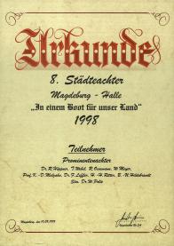 Urkunde zur Teilnahme am 8. Städteachter Magdeburg-Halle, 19. September 1998