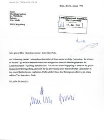 Glückwunschschreiben von Hans-Dietrich Genscher zum 60. Geburtstag von Dr. Willi Polte 1998 (Quelle: Stadtarchiv Magdeburg)
