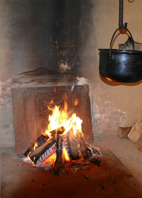 Die Kräutersuppe köchelt im Topf über dem offenen Feuer in der Hofanlage Rasseln.