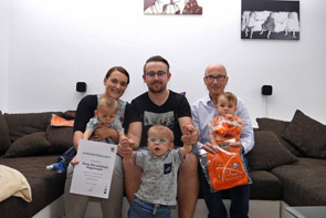Bald dürfen die Drillinge ein neues Zuhause kennenlernen. Noch dieses Jahr wollen die Eltern den Umzug starten, denn die alte Wohnung ist für fünf Personen zu eng geworden. Die Familie bleibt aber in Herten. „Jetzt, wo die Kinder immer mobiler werden, brauchen wir einfach mehr Platz. Wir sind sehr zufrieden mit unserem neuen Heim. Dort haben die Kinder dann einen Garten zum Spielen“, so Frank Niggemeyer. Auch dabei wünscht der neue Ehrenpate natürlich viel Glück und Erfolg.