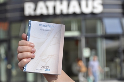 Rechtzeitig zum Schulbeginn versendet das Frauenbüro der Stadt Leverkusen den Schülerinnenkalender Mädchenmerker für das Schuljahr 2017-2018. Ein Schuljahr lang bietet der Kalender vielfältige Informationen zur Berufs- und Studienwahl für Mädchen und junge Frauen. So werden zum Beispiel in Berufsporträts Frauen vorgestellt, die in eher von Männern dominierten Berufen tätig sind: in diesem Jahr sind das eine Werkzeugmechanikerin, eine Agraringenieurin und eine Bestatterin. Daneben finden sich Infos zum Assessment-Center, ein Berufswahlfahrplan und vieles mehr. Tipps zu Beratungs- und Freizeitangeboten in Leverkusen runden den Inhalt ab.
