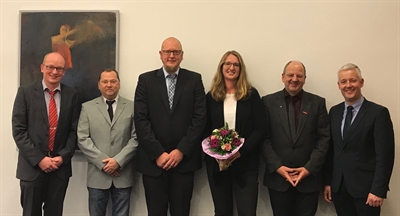 Bei der Ernennung im Kreishaus waren auch seine Ehefrau Bettina, Friedrich Lüpkes, Obermeister der Schornsteinfegerinnung für Ostfriesland, sowie Gerrit Gathen und Hans-Ubbo Oelrichs vom Ordnungsamt des Landkreises Leer anwesend.