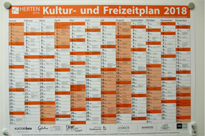 Wann tritt das Kindertheater auf, an welchen Tagen finden Comedy- oder Musikveranstaltungen statt und welcher Feiertag ist wann? Mit dem Wandkalender „Kultur- und Freizeitplan 2018“ finden Bürgerinnen und Bürger ganz leicht viele wichtige Ereignisse und Veranstaltungen in Herten auf einen Blick. Ab sofort kann der Planer kostenlos im Glashaus und an der Rathaus-Information abgeholt werden.