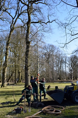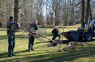 Sie mähen, schneiden und pflegen und manchmal pflanzen die Gärtner der Evenburg auch große Bäume ein.