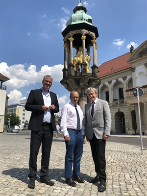 v.l.n.r.: Thomas Einsfelder (Geschäftsführer der Investitions- und Marketinggesellschaft), David Briel (Direktor der Wirtschaftsförderung Pennsylvanias) und Rainer Nitsche (Beigeordneter für Wirtschaft, Tourismus und regionale Zusammenarbeit)