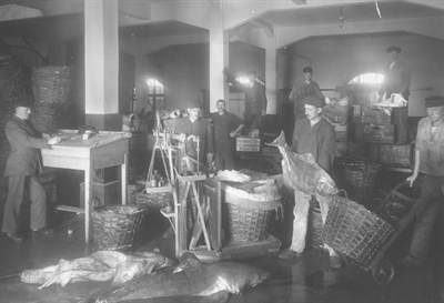 Mit der Sonderausstellung "Cuxhaven und der Fisch" hat das Museum "Windstärke 10" ein Thema aufgegriffen, das die Geschichte der Stadt entscheidend geprägt hat. Entsprechend groß war in den letzten Monaten das Interesse an der vielseitigen Schau, die den Bogen von den Anfängen des Seefischmarktes 1908 bis zu den heutigen fischverarbeitenden Betrieben schlägt. Viele Cuxhavener können sich noch gut an die Zeiten erinnern, als die Fischindustrie (und der Fischgeruch) das Leben in der Stadt dominierten, der Hafen voller Fischdampfer und die Kneipen voller Fischer waren. Ebenso wichtig wie die regelmäßigen Anlandungen waren die Betriebe, die den Fisch aufkauften und verarbeiteten. Namen wie "Seeadler", "Hussmann & Hahn" oder "Werber & Schütt" standen für eine ebenso vielfältige wie prosperierende Industrie.