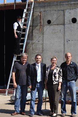 Von links nach rechts Wolfgang Sippel (auf der Leiter), Thomas Turk, Vizelandrätin Susanne Selbert, Kostas Verganelakis und Stephan Margraf (Betriebsleiter Biokompostierung Vollmarshausen).
