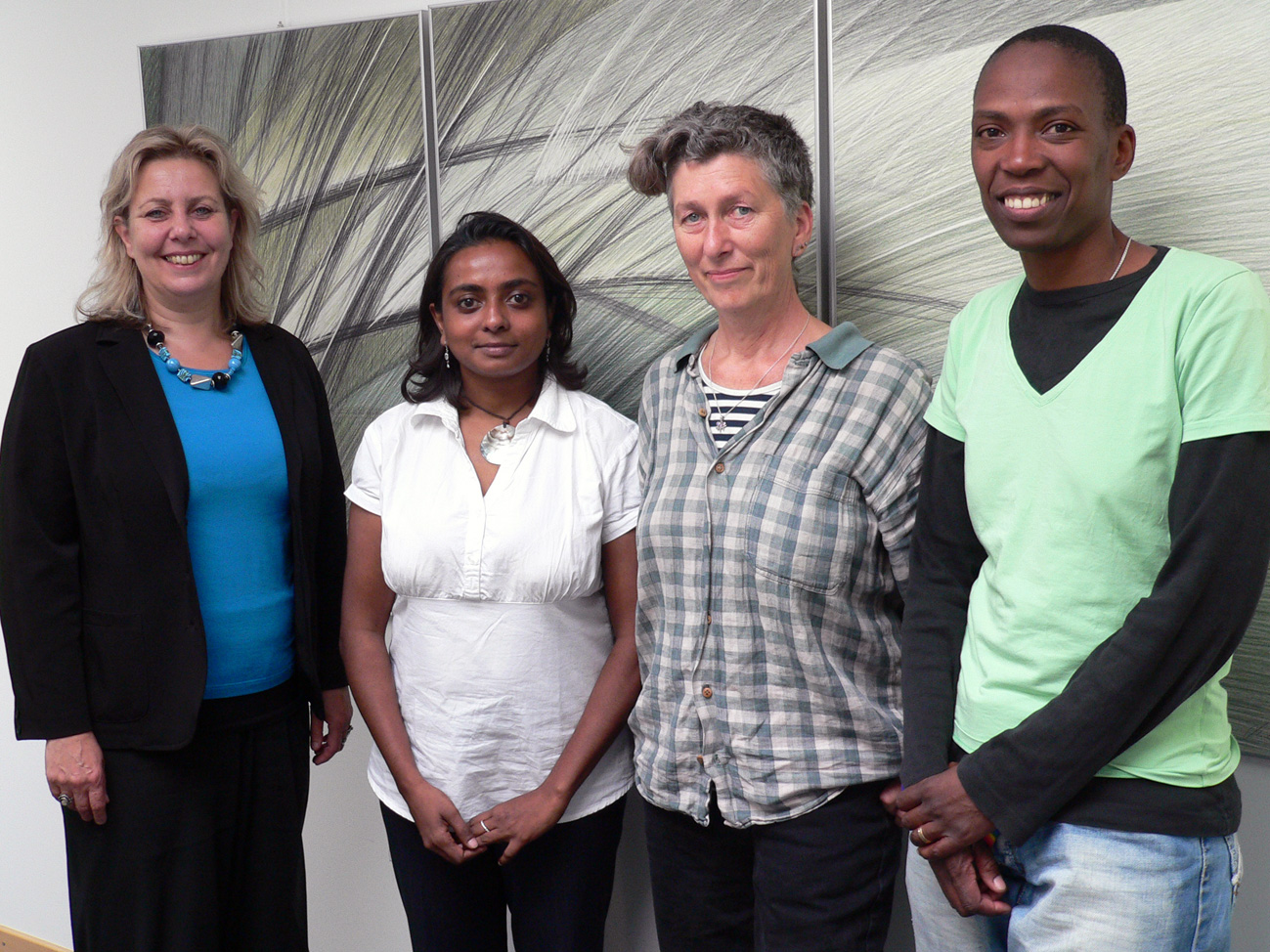 Auf dem Bild sind von links nach rechts Susanne Selbert, Dhiviya David, Irmes Schwager (Frauenhaus Kassel) und Vera King (Dynamo Windrad) zu sehen.