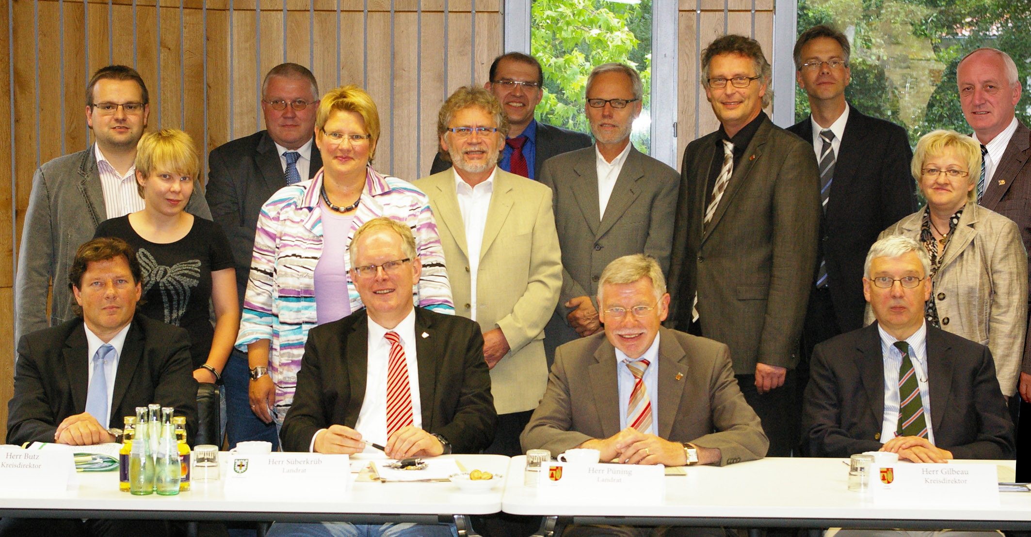 Kreisdirektor Roland Butz, Landrat Cay Süberkrüb, Landrat Konrad Püning und Kreisdirektor Joachim L. Gilbeau (1. Reihe, v.l.n.r.) mit ihren Mitarbeiterinnen und Mitarbeitern
