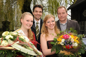 (v. li.:) Die neue NRW-Spargelkönigin Katharina II, Bürgermeister Dr. Uli Paetzel, die scheidende Königin Farina I. und Spargelbauer Heiner Schulte-Scherlebeck. (Foto: W. Quickels)