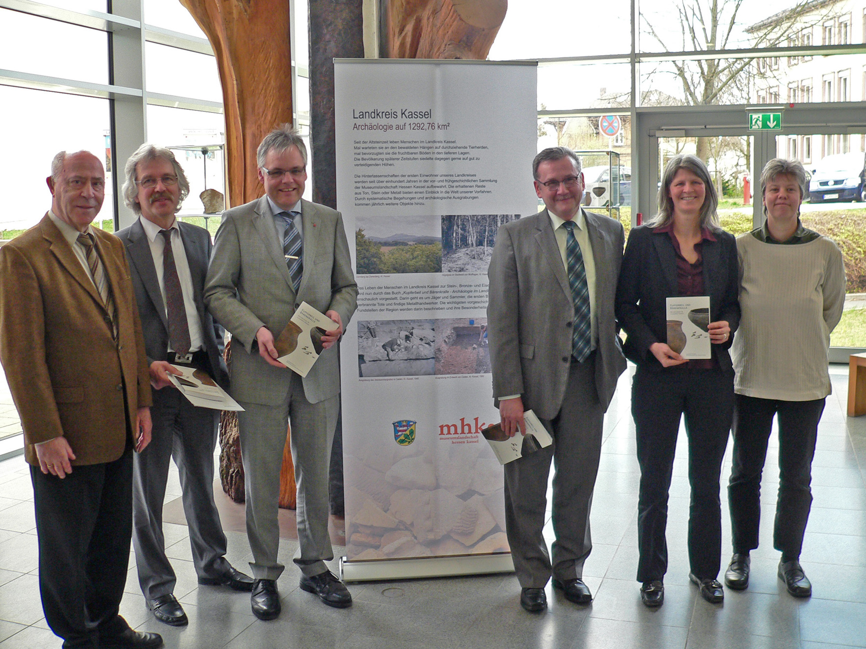 Auf dem Foto freuen sich von links nach rechts Dr. Joachim Schröder, Prof. Dr. Bernd Küster, Ingo Buchholz, Landrat Uwe Schmidt, Dr. Almut Bick und Dr. Irina Görner über die gelungene Publikation.