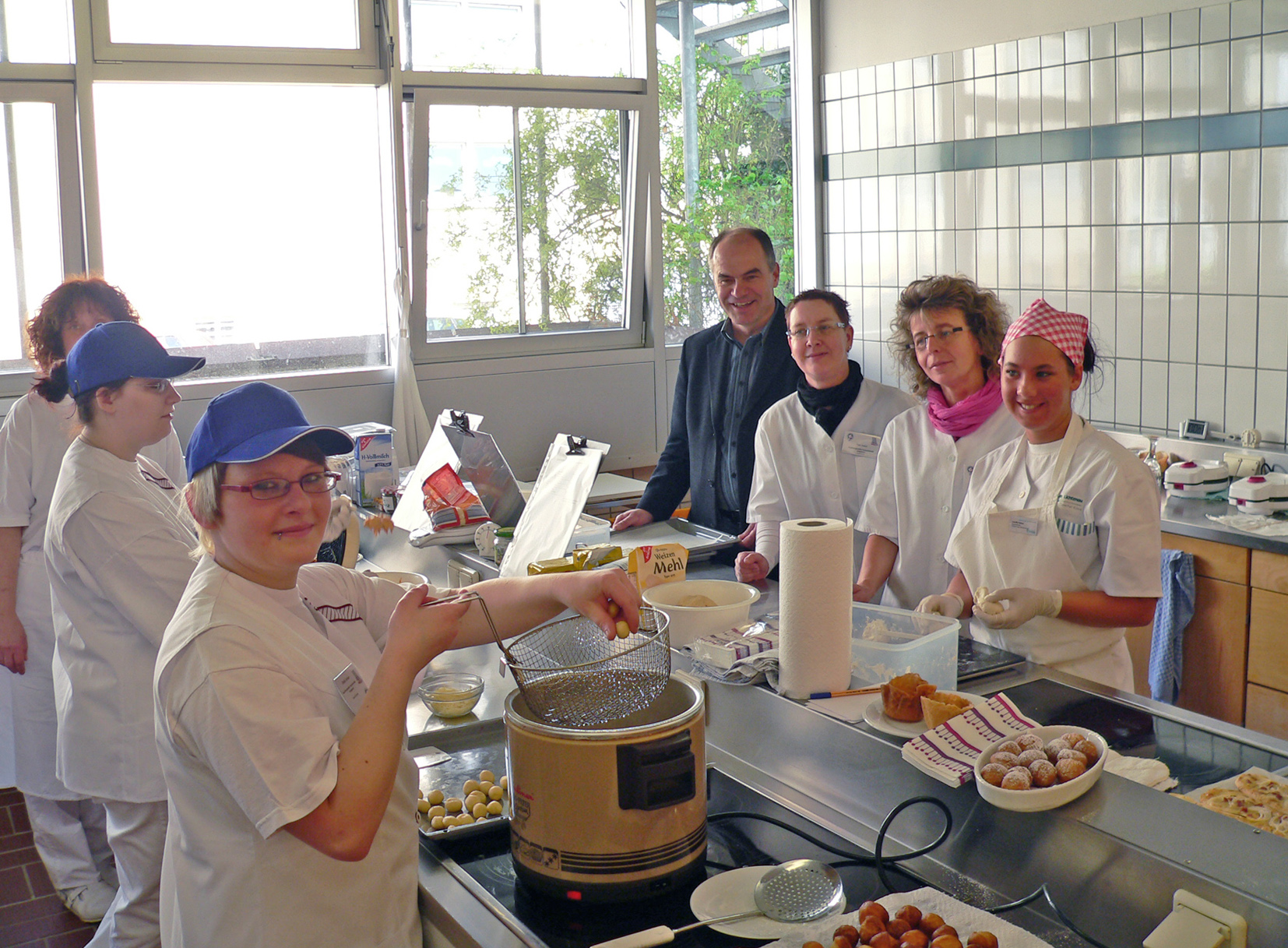 Auf dem angehängten Foto sieht man Impressionen vom Werkertag, beispielhaft die Ernährungsauszubildenden (von links nach rechts Yvonne Hortmans aus Wolfhagen, Sindy Junker aus Vellmar, Ausbilderin Kirstin Paul (leicht verdeckt), Klaus Wissemann (Ausbildungsleiter AGiL), die beiden Ausbilderinnen Petra Kaiser und Petra Staub-Meibert sowie die Auszubildende Jennifer Kabus aus Kaufungen).