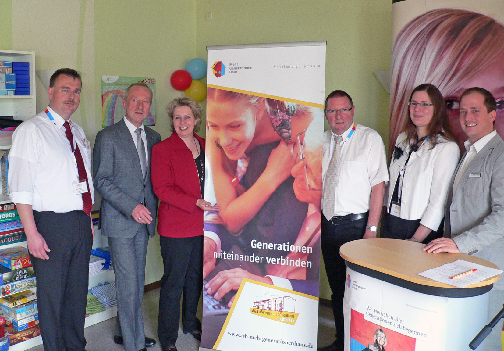 Auf dem Foto sieht man von links nach rechts: Michael Hillmann (1. Vorsitzender des ASB-Regionalverbandes Nordhessen), Bürgermeister Michael Reuter, Vizelandrätin Susanne Selbert, ASB-Geschäftsführer Michael Görner, Hausleiterin Christina Neuer und den Lohfeldener Präventionsratskoordinator Marko Hasselböck.