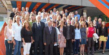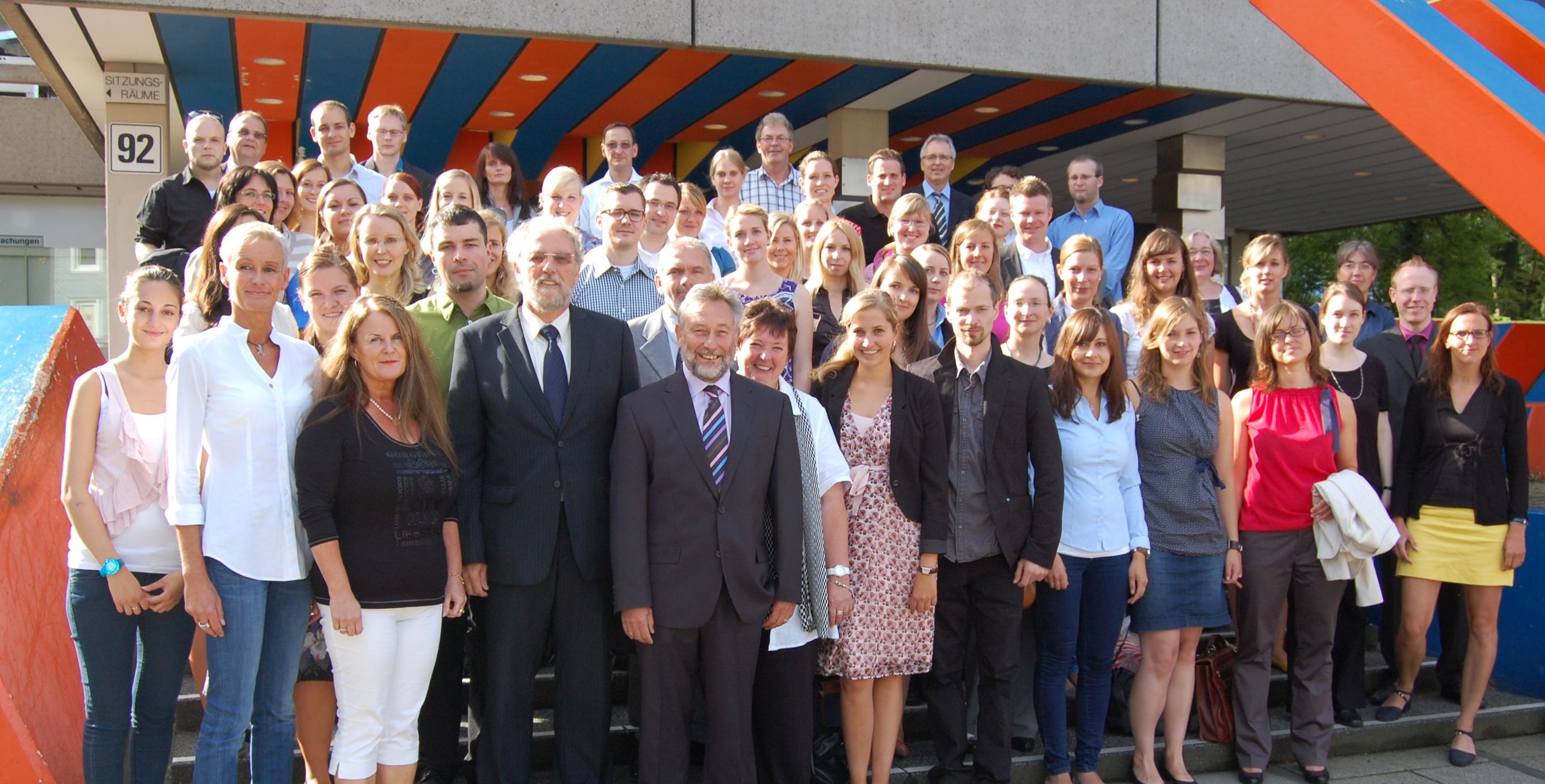 Gruppenfoto der neuen Lehrer mit Christian Salomon und Klaus Niewel vor dem Schwelmer Kreishaus/Bild: UvK/Ennepe-Ruhr-Kreis