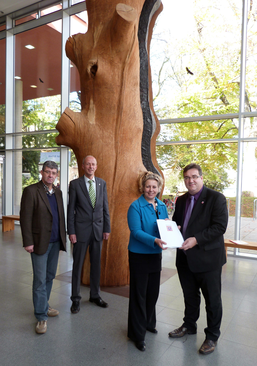 Auf dem Foto sieht man von links nach rechts Rolf Enders (Geschäftsführer Hessischer Wasserverband Diemel), Armin Schwarz (MdL), Vizelandrätin Susanne Selbert und Staatssekretär Mark Weinmeister.