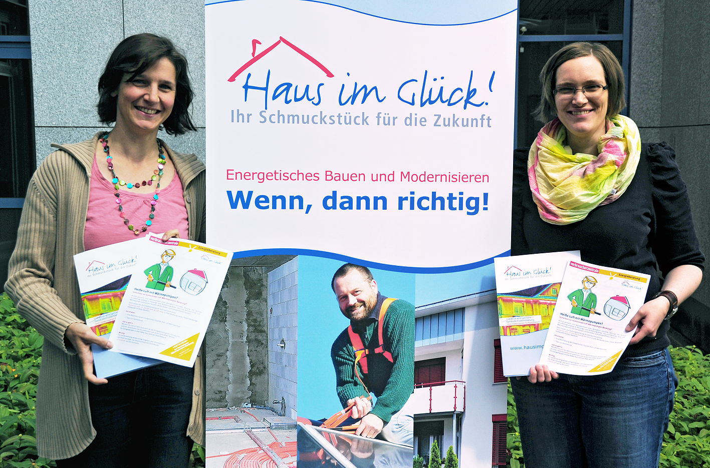 Die stellvertretende Geschäftsführerin Jutta Höper (l.) und Projektkoordinatorin Mareike Bußkamp unterstützen mit ihrem gemeinnützigen Verein "Haus im Glück" den Luft-Wärmepumpen-Check im Kreis Steinfurt.