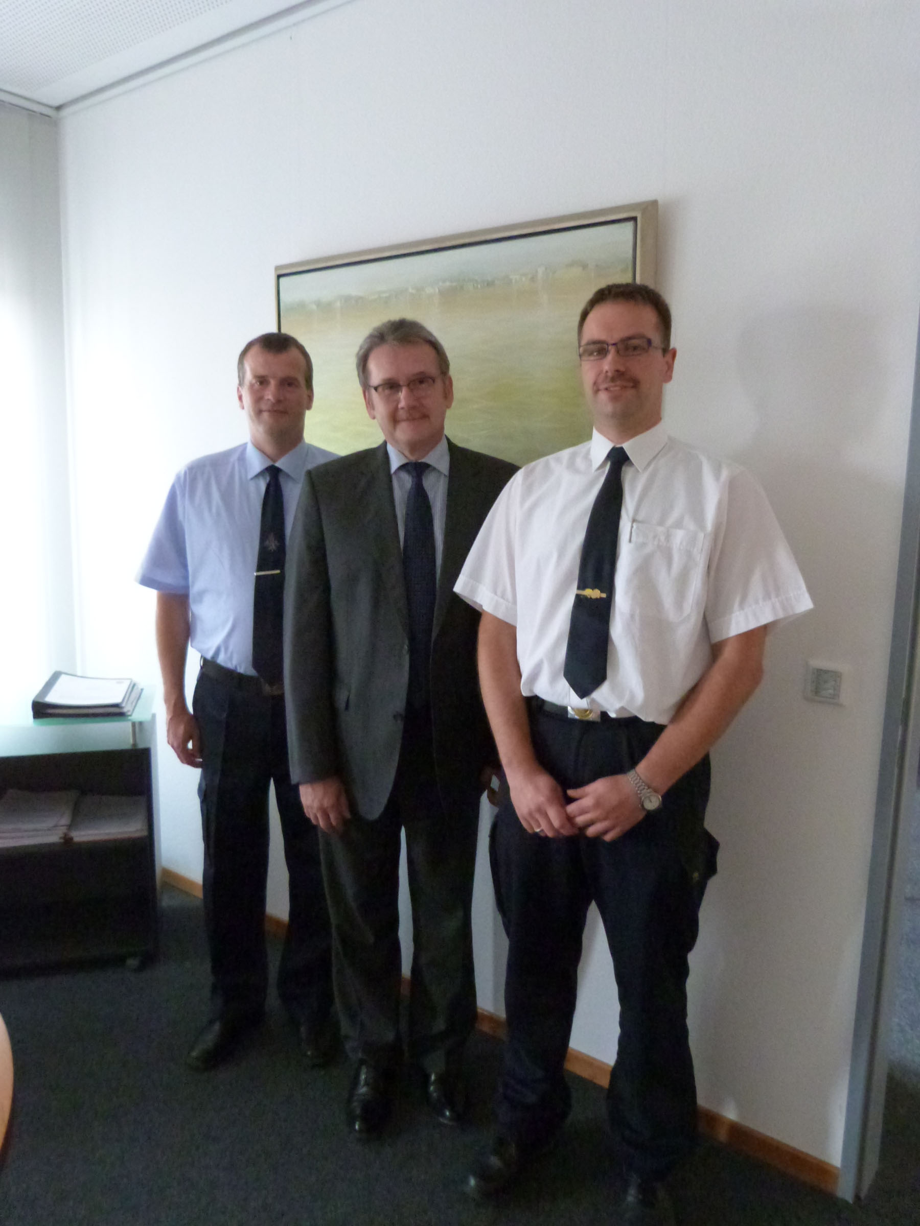 Auf dem Foto sieht man von links nach rechts Christian Fischer, Landrat Uwe Schmidt und Kreisbrandinspektor Sebastian Mazassek.