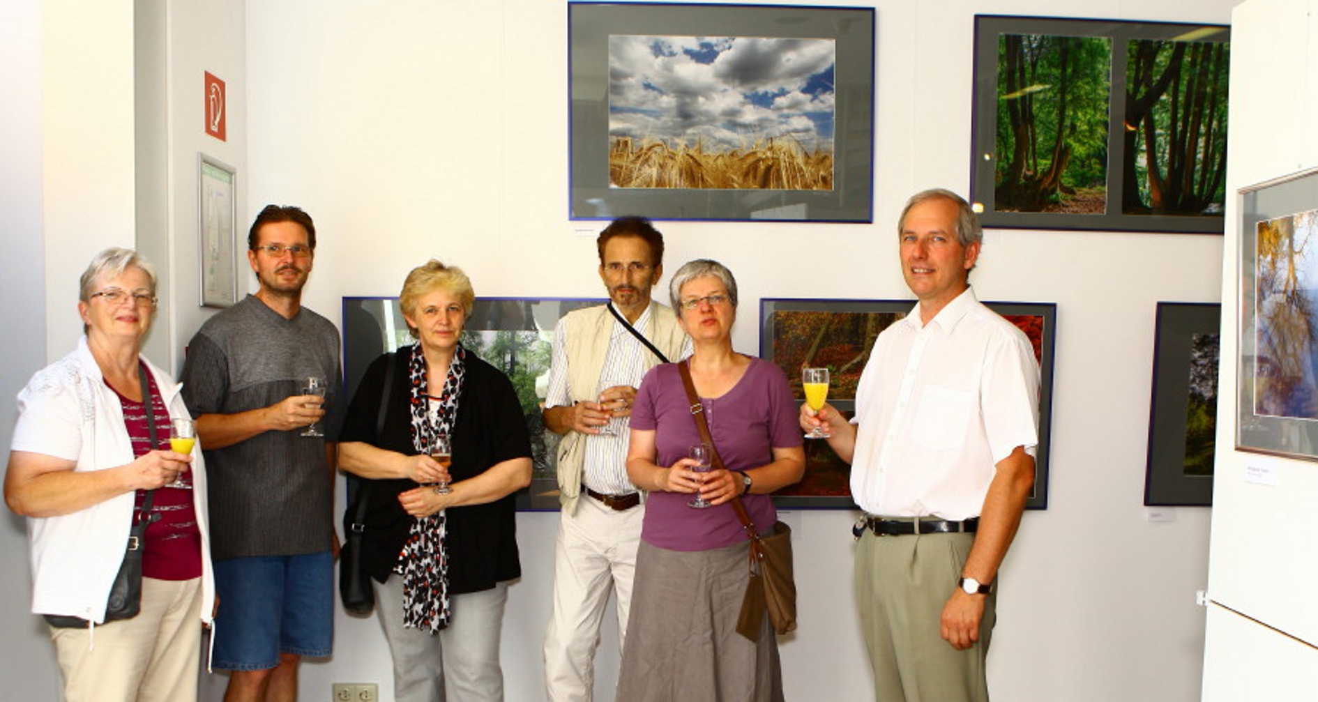 Bis zum 29. September ist die Ausstellung "Schwalm-Nette im Focus" im Haus Püllen in Wachtendonk zu sehen. Michael Puschmann (r.), Geschäftsführer des Naturparks Schwalm-Nette, eröffnet die Ausstellung mit einigen der Fotografen (v.l.): Rosi Ludewig aus Wankum, Jochen Dirks aus Sonsbeck, Heike Goertz-Liedtke aus Kerken, Reiner Horl aus Kempen und Sabine Jongmanns aus Nettetal. Foto: Karla Riße / Abdruck honorarfrei.