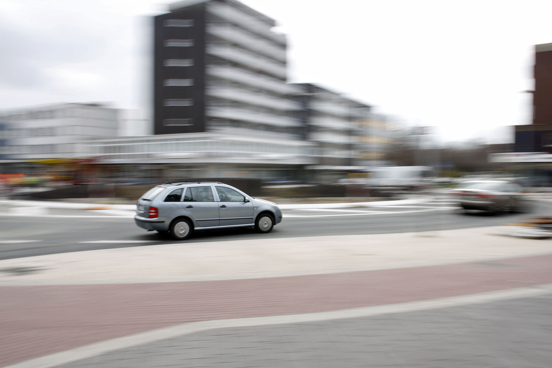 Die ersten Autos fahren durch den Kreisverkehr. Besser hätten die Asphaltarbeiten am Kreisverkehr in der Innenstadt kaum laufen können.