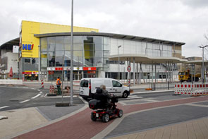 Die ersten Autos fahren durch den neuen Kreisverkehr. Besser hätten die Asphaltarbeiten am Kreisverkehr in der Innenstadt kaum laufen können.