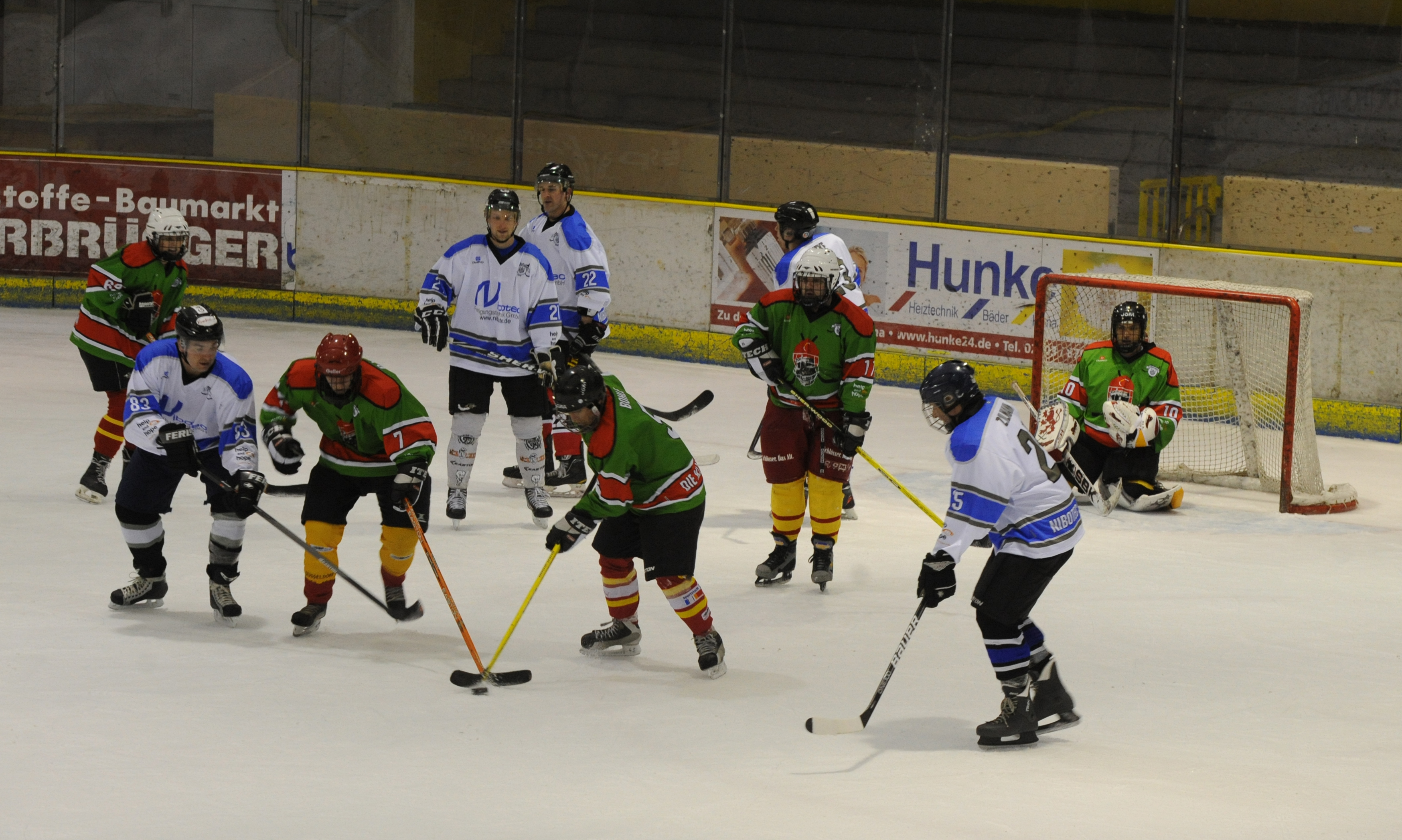 Die Klapperer kämpfen mit hohem Einsatz vor dem eigenen Tor.