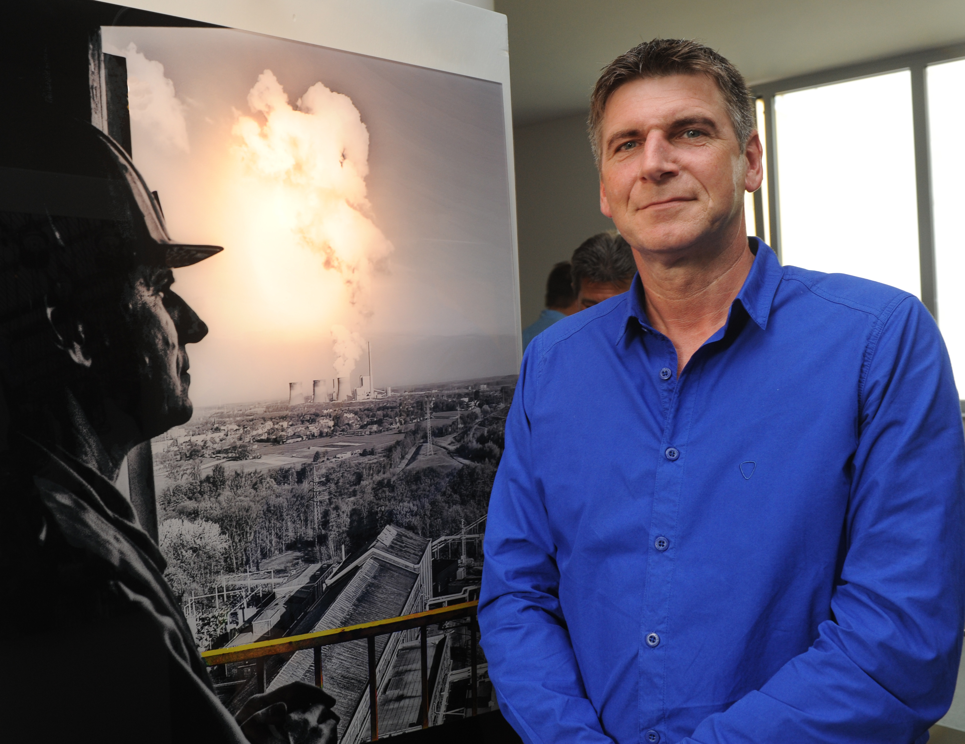 Zweimal Michael Henning, einmal fotografiert von Jürgen Post bei der Stillegung des Bergwerks Ost und zudem beim Besuch der Ausstellung.