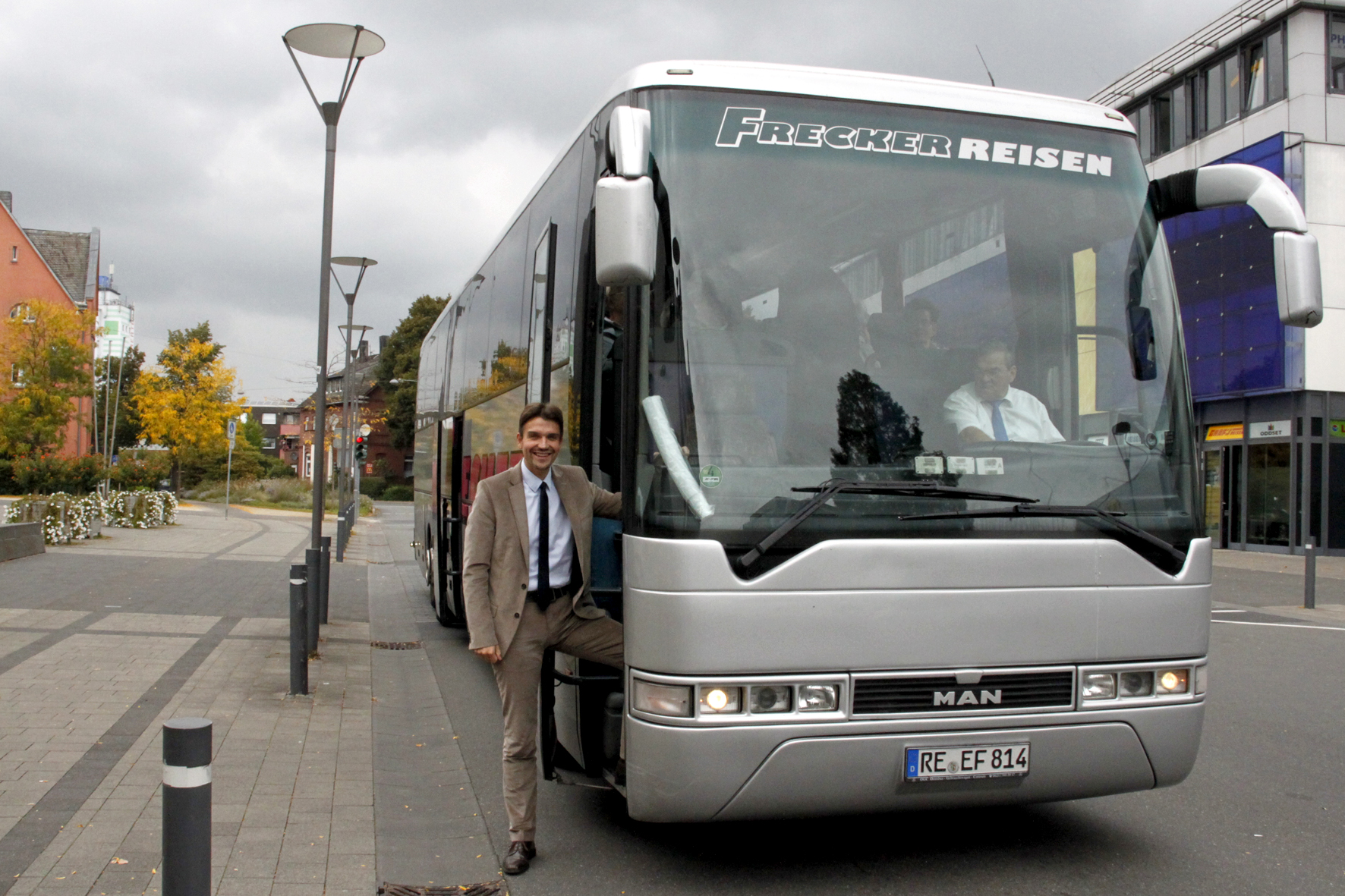Seit 2004 fährt Bürgermeister Dr. Uli Paetzel auf Stadtrundfahrten durch sein Herten. Heute feiert er sein persönliches Jubiläum: Zur 200. Fahrt begrüßte er 57 Gäste im Bus vor dem Rathaus.