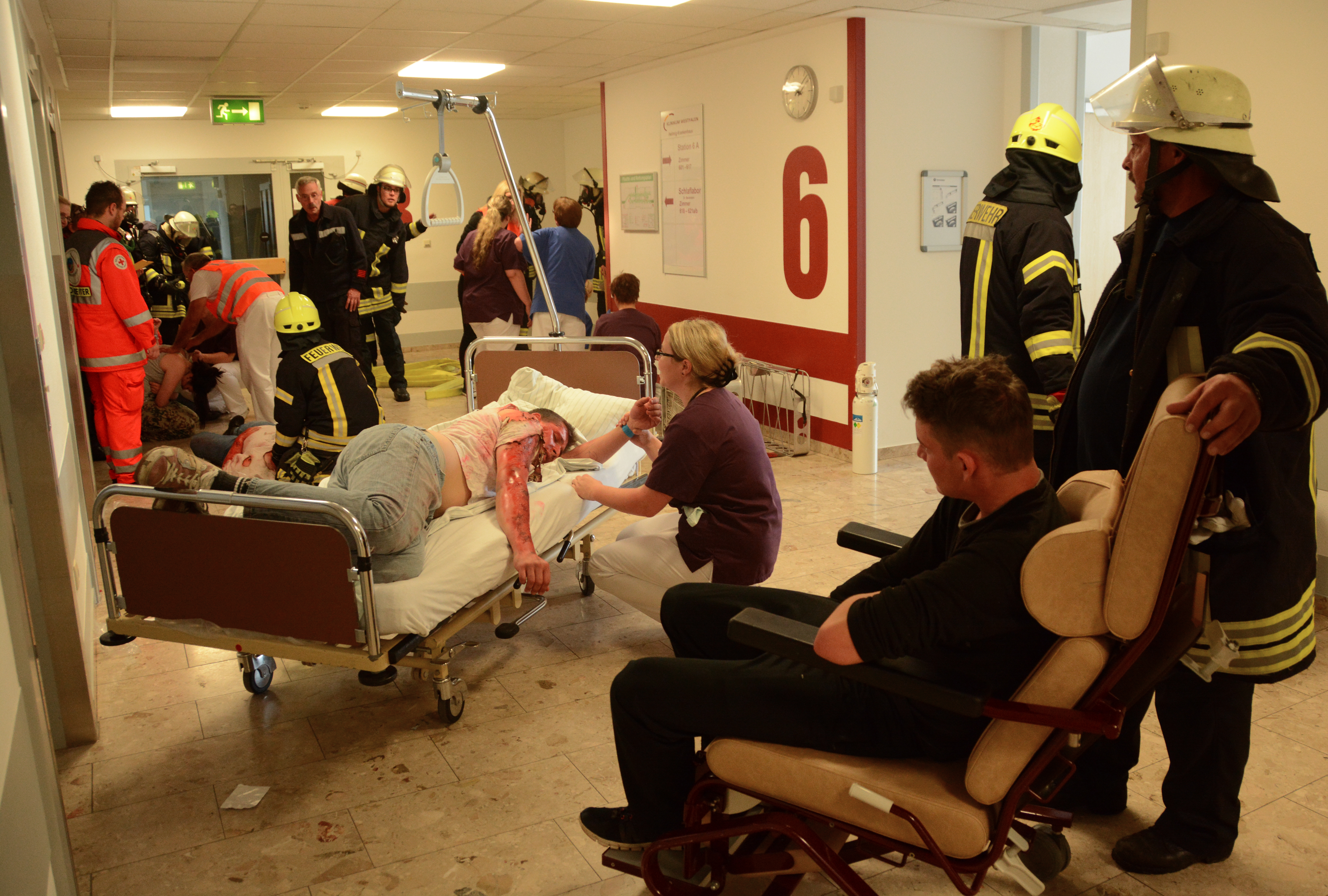 Vor ein täuschend echtes Szenario wurden die Helfer auf der 6. Etage des Krankenhauses gestellt.