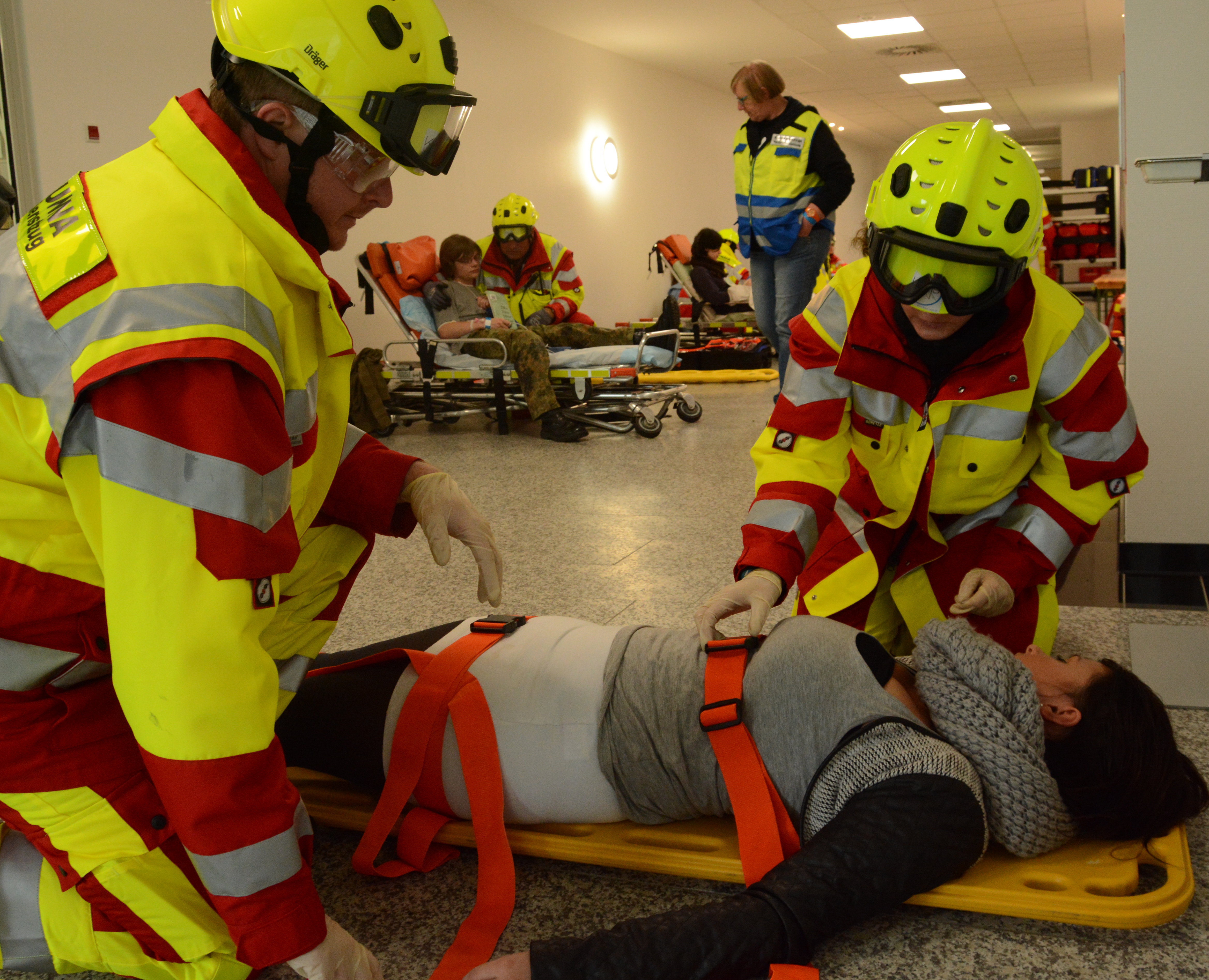 Weniger schwer verletzte Patienten wurden an einen provisorischen Behandlungsplatz außerhalb der Gefahrenzone verlegt.