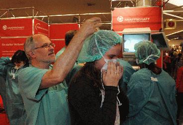 Vor der OP steht das Einkleiden, das galt auch für spielerische Selbstversuche in den Westfalenhallen.