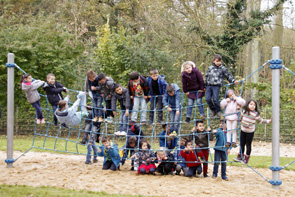 Sich bewegen und den Teamgeist stärken: Der neue Niedrigseilgarten an der Süder Grundschule lädt Kinder in Zukunft zum Klettern und Balancieren ein.