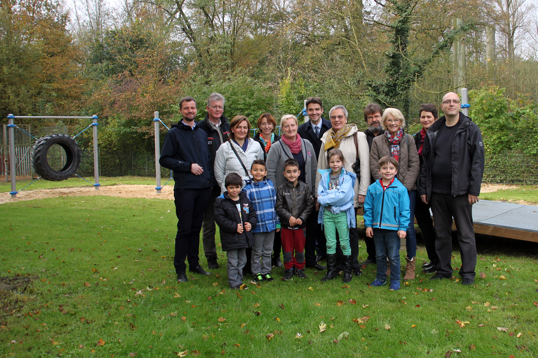 Sich bewegen und den Teamgeist stärken: Der neue Niedrigseilgarten an der Süder Grundschule lädt Kinder in Zukunft zum Klettern und Balancieren ein. Zur Einweihung am Donnerstag, 23. Oktober, waren Bürgermeister Dr. Uli Paetzel und Vertreter einiger Sponsoren vor Ort, um den fertigen Parcours aus acht Stationen zu besichtigen.