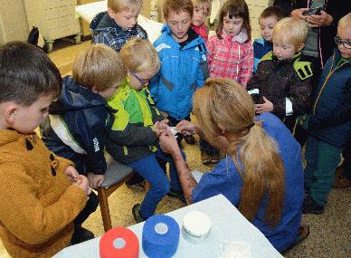 Die Besucher der kath. Kindertageseinrichtung Herz Jesu ließen sich in der Notaufnahme des Hellmig-Krankenhauses kunstvoll "verarzten".