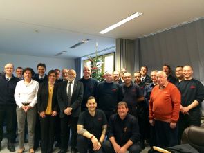 Traditionell lassen es sich Bürgermeister Dr. Uli Paetzel, der stellvertretende Bürgermeister Karl-Heinz Forst und die stellvertretende Bürgermeisterin Silvia Godde, Fachbereichsleiterin Annegret Sickers, Gerd Kirchmann, Vorsitzender des städtischen Personalrats, Pfarrer Ulrich Gallwitz und der Kreisbrandmeister mit seinem Vertreter nicht nehmen, den Einsatzkräften ihre Anerkennung auszusprechen. (Foto: Oliver Mertineit)