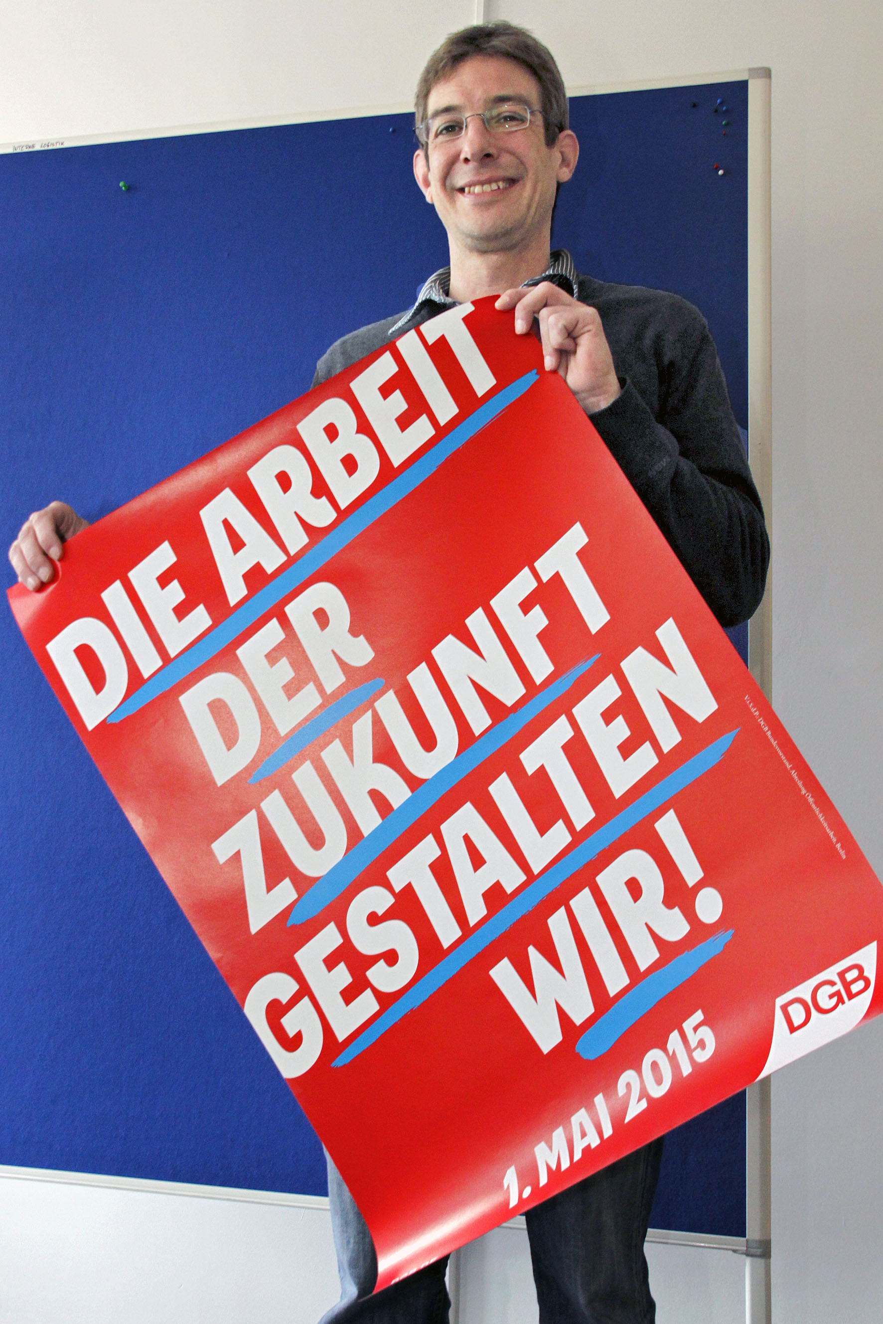 Hans Hampel, Organisationssekretär des DGB - Region Emscher-Lippe, stellt das Motto der diesjährigen Maikundgebung vor: "Die Arbeit der Zukunft gestalten wir!"