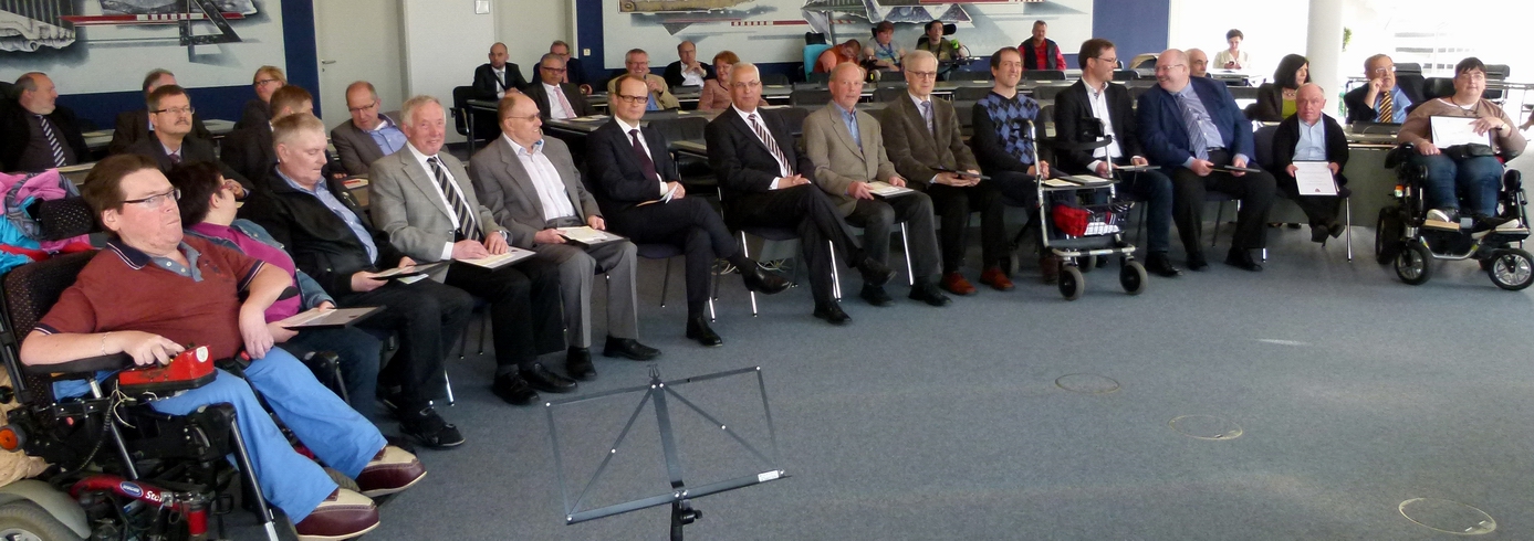 Landrat Dr. Karl Schneider und Kreisdirektor Dr. Klaus Drathen mit den geehrten Behinderteninteressenvertretern. / Foto: Pressestelle HSK