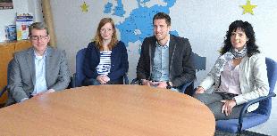 Haben sich erfolgreich fortgebildet: Die beiden Diplom-Verwaltungswirte der Kreisverwaltung Steinfurt, Simone Weidel (2. von links) und Matthias Reker (3. von links), haben nun auch den „Master of Public Administration“ in der Tasche. Zu ihren erfolgreich abgeschlossenen Studiengängen gratulierten Haupt- und Personalamtsleiter Dr. Klaus Effing und die Leiterin des Sachgebietes „Personal“, Roswitha Reckels.