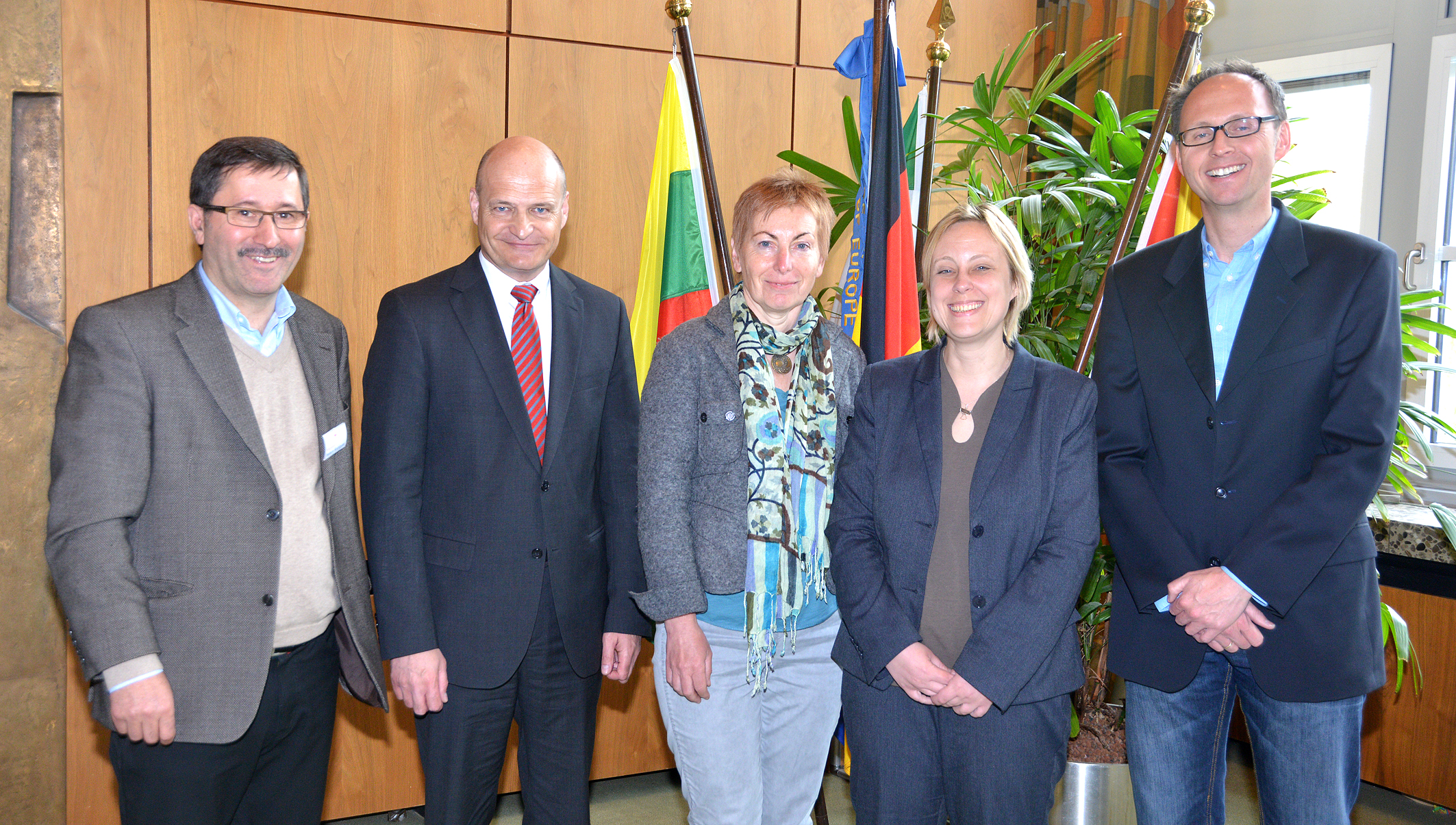 Tauschten sich im Rahmen der Fachkonferenz Zuwanderung und Integration über die aktuelle Flüchtlingssituation im Kreis Steinfurt aus (v.l.): Nelson Rodrigues, Leiter Migrationsstelle Caritasverband Rheine; Kreisdirektor Dr. Martin Sommer; Erika Leuteritz, Integrationsstelle Stadt Emsdetten; Birgit Naujoks, Flüchtlingsrat NRW und Oliver Klöpper, Leiter der Ausländerbehörde Steinfurt.